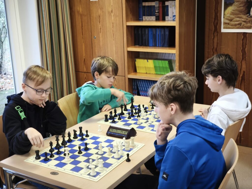 Die Mittagspause bot dann eine gute Gelegenheit, sich am Buffet mit Kuchen, Brötchen und anderen kleinen Speisen zu bedienen. Vier Runden waren bereits vergangen; eine gute Gelegenheit den Kopf freizubekommen und sich auf die nächste Runde vorzubereiten. Für Finn lief die erste Halbzeit so gut wie man es sich nur wünschen kann. Alle bisherigen Partien konnten gewonnen werden und die Motivation auf die nächste Runde war groß. Auch Jonah, Frederick, Titus, Wolf, Fabian und Max konnten sich über einen starken Zwischenstand von drei aus vier Punkten freuen.