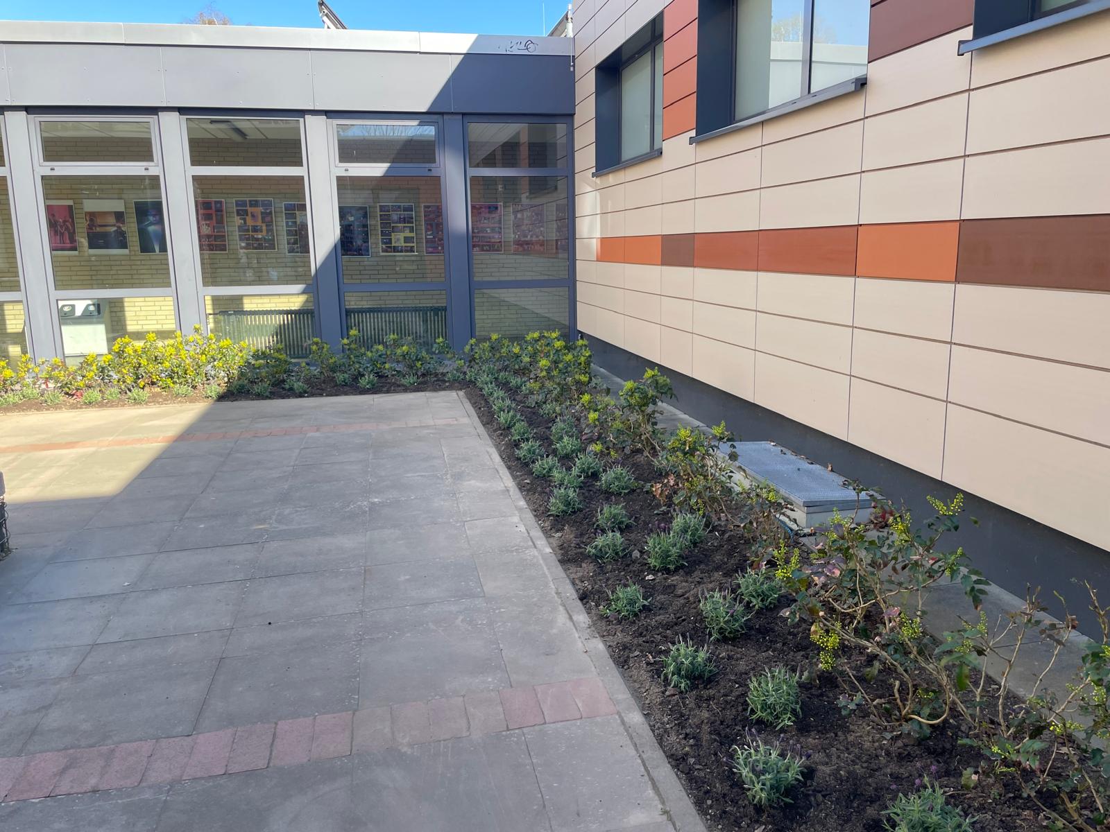Jetzt ist unser Projekt abgeschlossen und wir finden, dass der Innenhof dadurch deutlich freundlicher wirkt. Wir hoffen, dass sich viele darüber freuen und der Lavendel schon aufblüht.